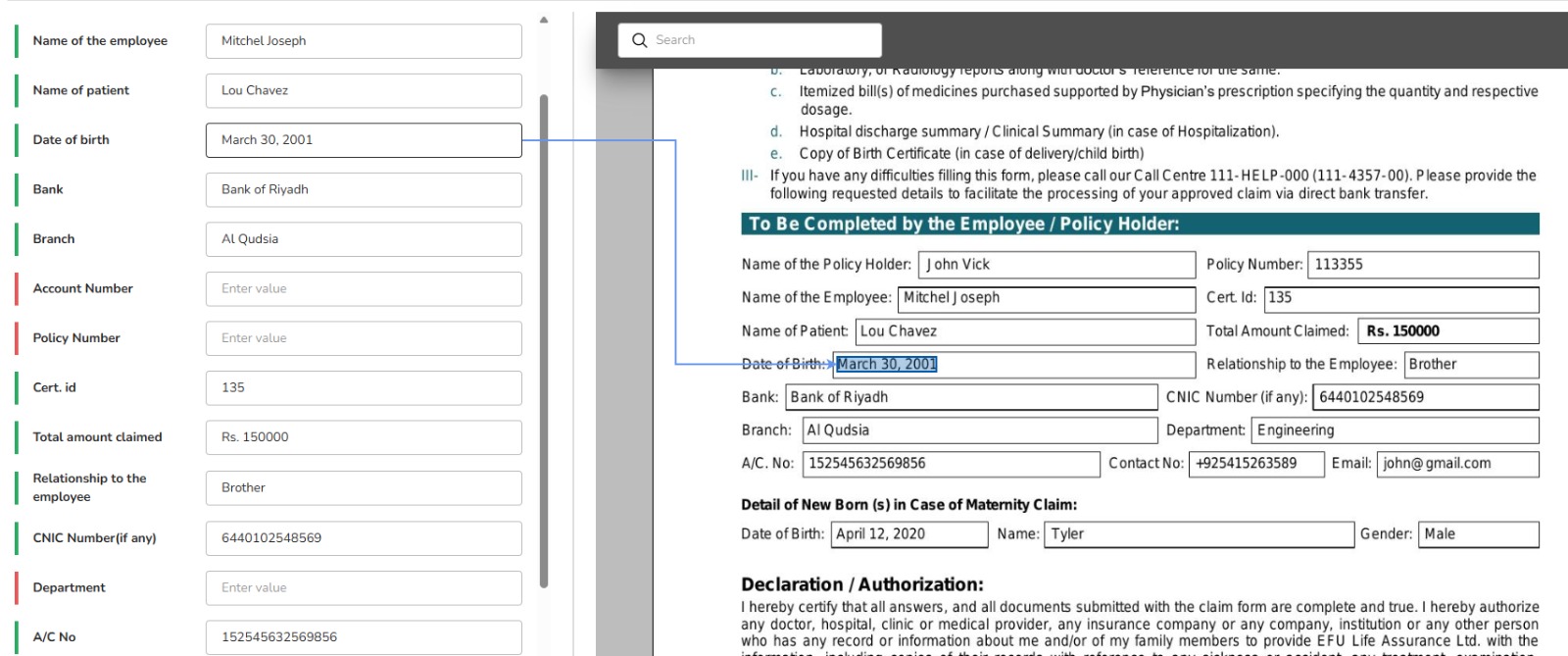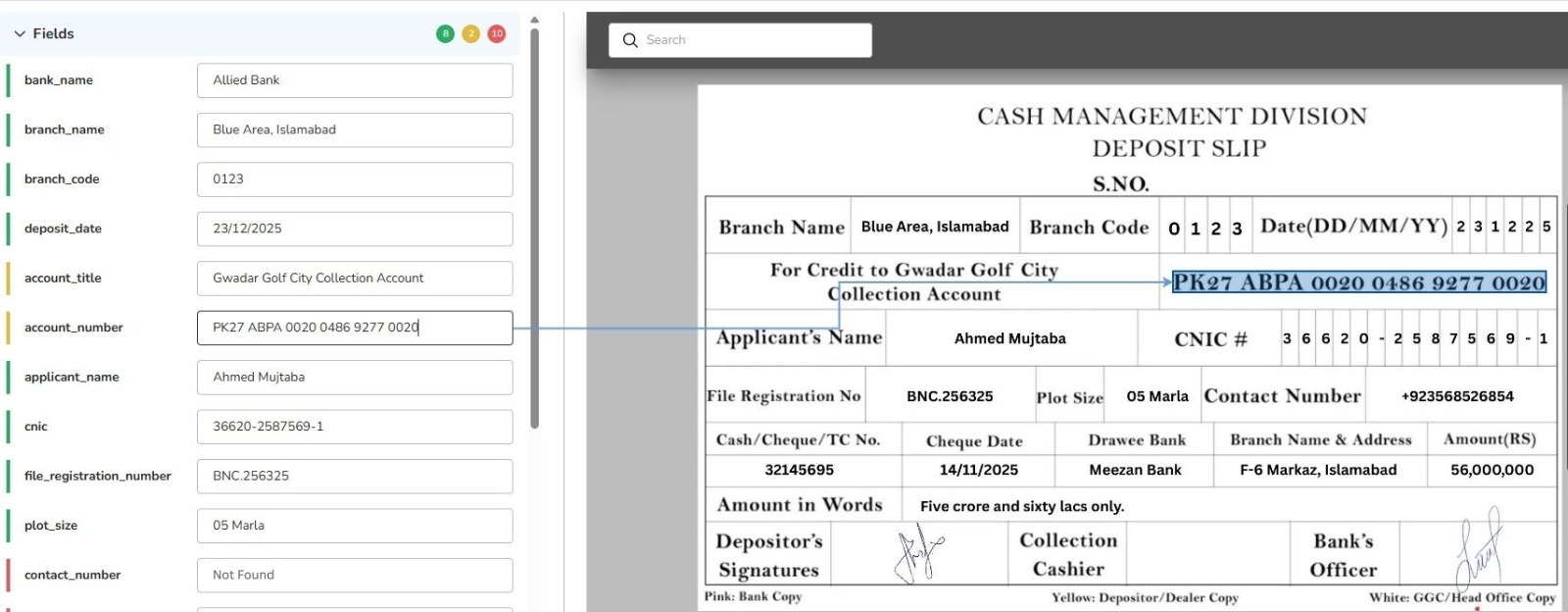 Low-confidence or ambiguous fields are escalated for human-in-the-loop review with full audit tracking.